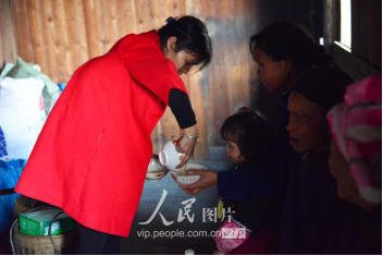 一般要到快過春節(jié)的時候,男方家才專門請人去接女方來洗糯米、打糍粑,新娘方能在夫家住上一夜;在來年農(nóng)忙時節(jié),又接女方來幫忙,夜里仍不能在男方家留宿,幫完忙當晚即回去,只有待到女方有身孕后,新娘才到夫家長住。圖為11月16日夜,新娘潘芝銀家為準備婚禮,燈火徹夜長明。